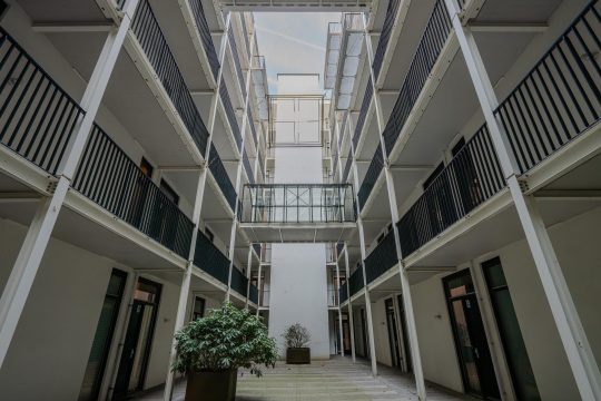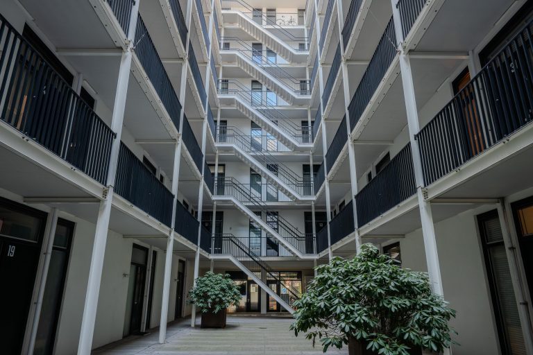 – Op de begane grond is een gemeenschappelijke binnentuin voor de bewoners van het complex.