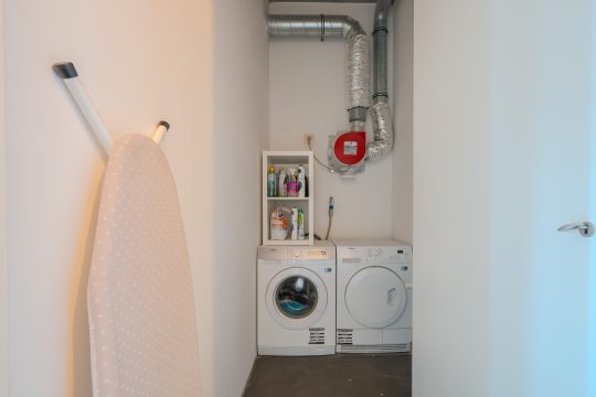Technische ruimte/inpandige berging, uitgerust met de unit mechanische ventilatie, de aansluitingen voor de wasapparatuur, de unit vloerverwarming.