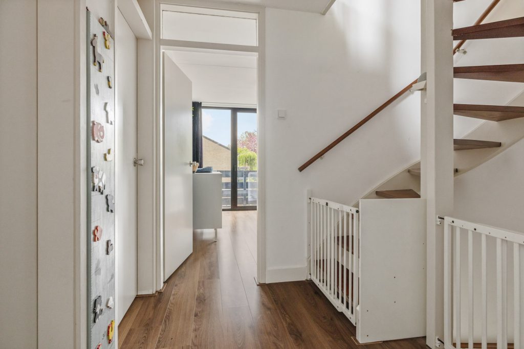 Overloop, bereikbaar middels dichte trap, met laminaatvloer en met toegang tot 3 slaapkamers en de badkamer.
