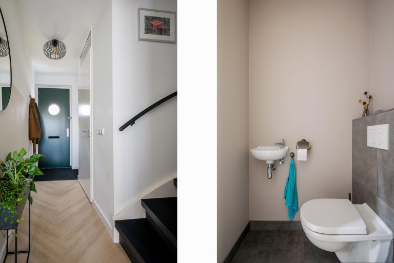 Vanuit de hal toegang tot de woonkamer, het toilet en de trap naar de eerste verdieping.