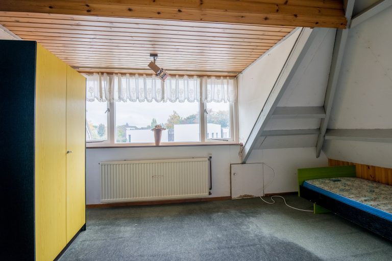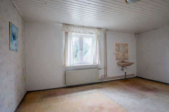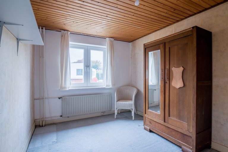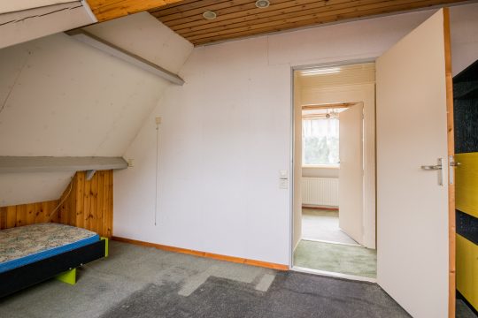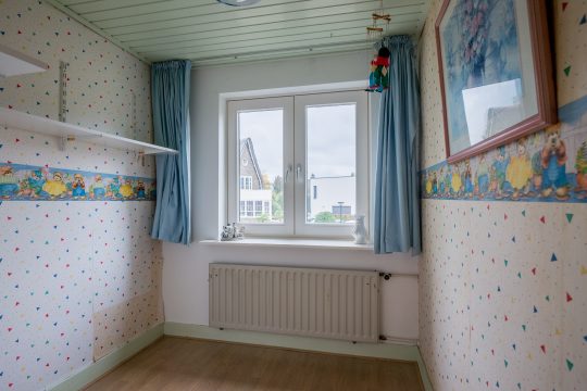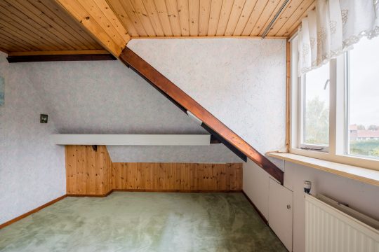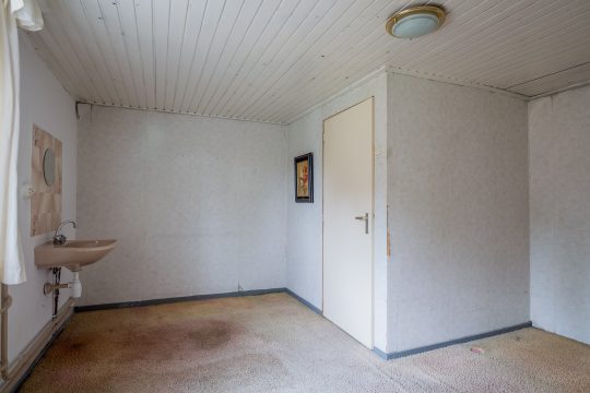 Alle 3 de slaapkamers zijn voorzien vloerbedekking of een laminaatvloer, behangen wanden en houten schrootjes plafonds. De slaapkamer gelegen aan de achterzijde is voorzien van een vaste wastafel.