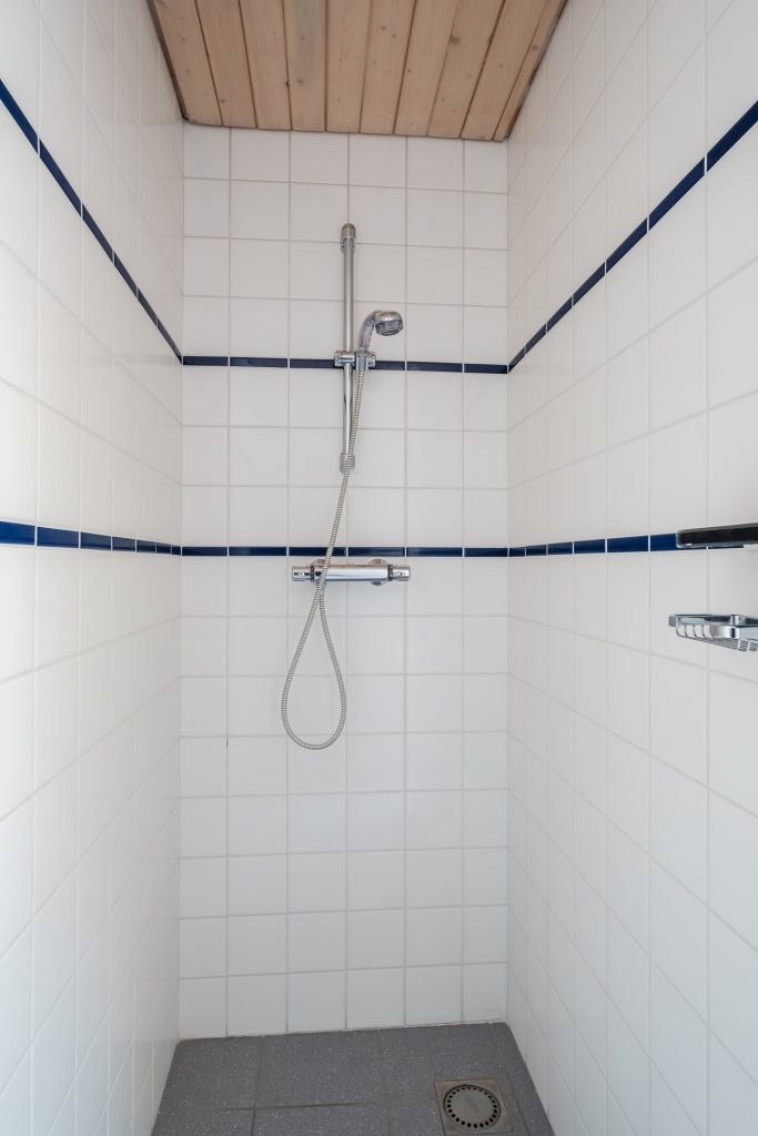 Zitkamer, met tegelvloer met vloerverwarming, schoonmetselwerk wanden en licht houten plafond met inbouwspots. Aan de zitkamer grenst een badkamer.