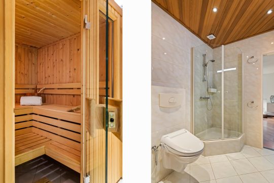 From the bathroom, there is access to the sauna.